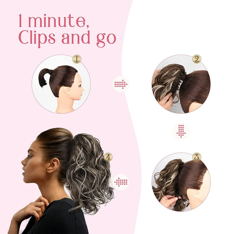 Ponytail Extension Claw Clip In Ponytail Hair Extensions 10 Inch Short Curly Ponytail Natural Wavy Synthetic Hairpiece For Women Daily Use Chocolate Brown With Caramel Blonde Highlights Walmart Com
